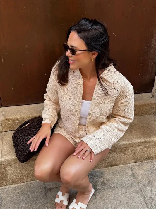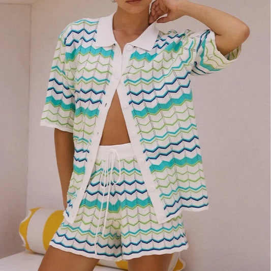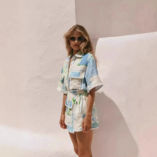 שרה – סט חולצה ומכנסיים קצרים לחוף